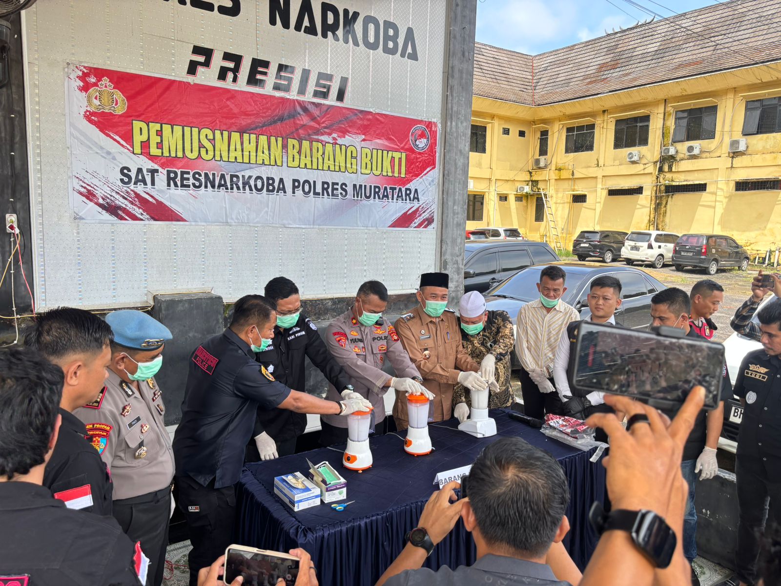 Proses pemusnahan barang bukti dilakukan secara terbuka di hadapan para saksi yang hadir. Metode yang digunakan adalah dengan menghancurkan sabu menggunakan mesin blender, kemudian mencampurnya dengan cairan pembersih lantai hingga larut.