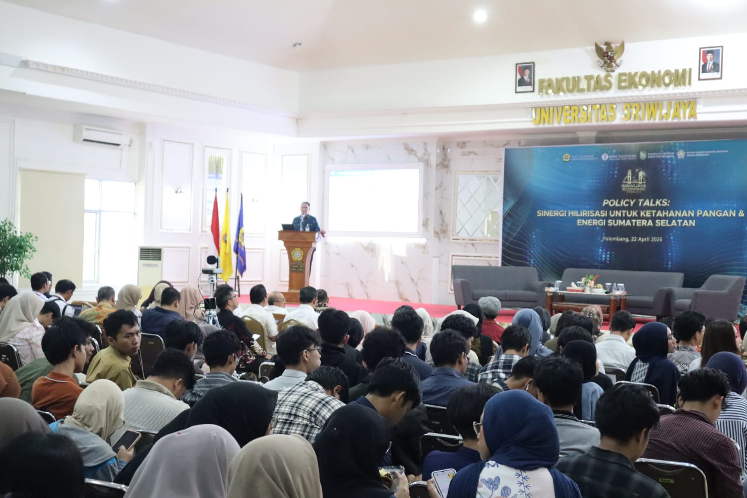 Sebagai bagian dari langkah konkret, Bank Indonesia Provinsi Sumatera Selatan bersinergi dengan Ikatan Sarjana Ekonomi Indonesia (ISEI) menggelar kegiatan Policy Talks dalam rangka Sriwijaya Economic Forum 2026 (SEF). Kegiatan bertajuk “Sinergi Hilirisasi untuk Ketahanan Pangan & Energi Sumatera Selatan” ini berlangsung pada Rabu (22/4/2026) di Universitas Sriwijaya.